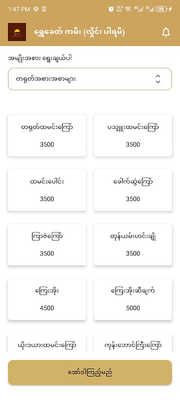 ရွှေခေတ် ကဖီး (လှိုင်၊ ပါရမီ) ဆိုင်၏ မီနူးမျာ းြည့်ရှုရန် ဖြစ်ပါသည်။
