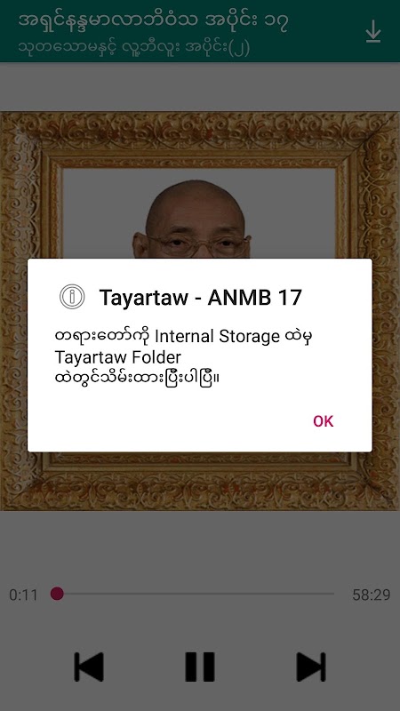 APKPure gebruikt handtekeningverificatie om virusvrije အပိုင္း၁၇ အရွင္နႏၵမာလာဘိဝံသတရားေတာ္Tayartaw-ANMB17 APK downloads voor u te garanderen.