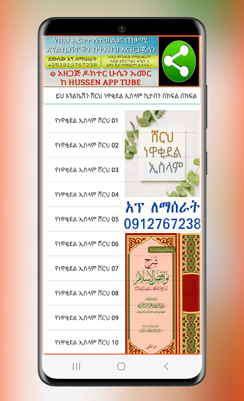 Deze app is op zo'n mooie manier ontworpen door Dr. Hussain Umar, en we bereiden Koranlessen, Hadithlessen en ook Tafsir-applicaties op bestelling voor. Je kunt ons bereiken op dit telefoonnummer 251912767238