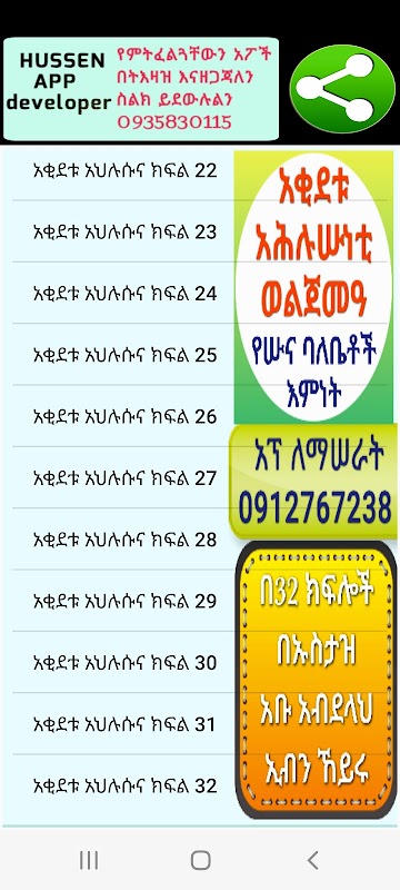 - Deze app is op zo'n mooie manier ontworpen door Dr. Hussain Umar, we bereiden ook koranlessen, Hadith-lessen en tafsir-applicaties op bestelling voor. U kunt ons bereiken op dit telefoonnummer 251912767238.