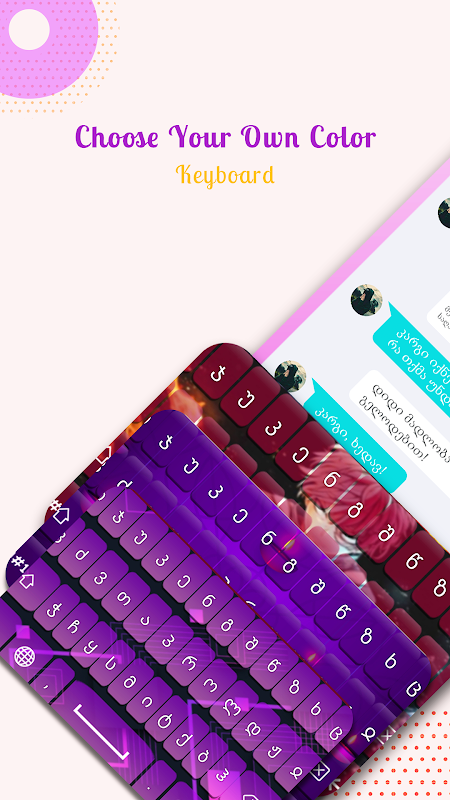 This app is designed with a huge amount of stunning & eye-catching colors & keyboard theme and font. Choose the color or theme that you most like & write the Georgian alphabets.