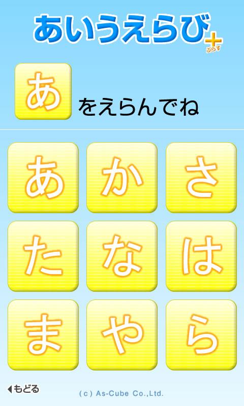 あいうえお:ひらがな五十音を順番に選ぶモードです。