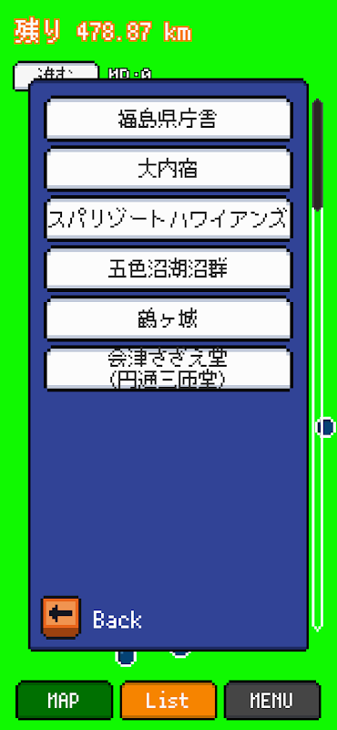 - Laten we de bestemming instellen met de knop Lijst. Je kunt het ook instellen vanaf de blauwe stip op de kaart.