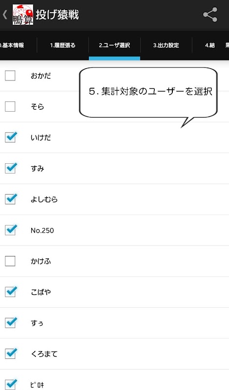・「与ダメ合計の出力ON/OFF」そのユーザの与ダメ合計を集計結果に出力するしないを選択できます。