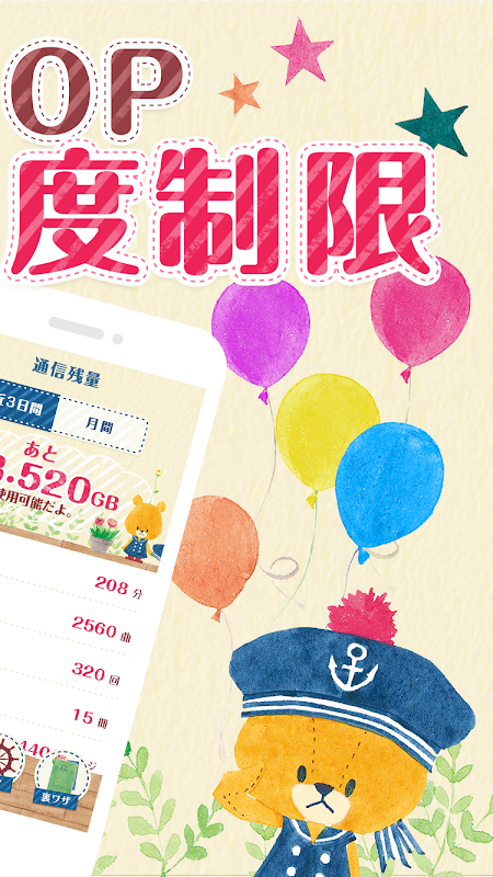 キュートなルル&ロロと一緒に通信量をチェックして