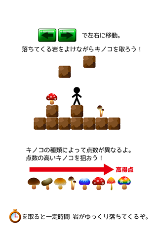 落ちてくる岩をよけながらキノコを取ろう!