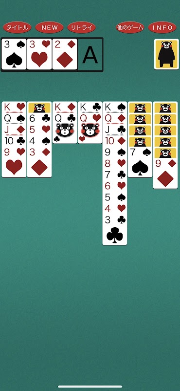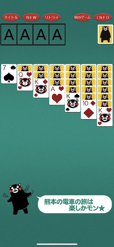 Kumamon verschijnt in het klassieke kaartspel "Solitaire"! Ondanks de simpele regels is patience een spel met diepgang en blijf je spelen totdat je het uitspeelt.