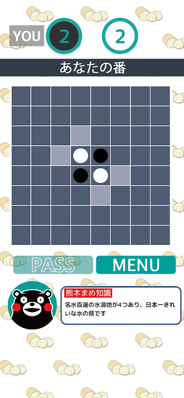 "Kumamon's Reversi" is een eenvoudig reversi-spel met een schattig ontwerp door Kumamoto Sales Manager, Kumamon.