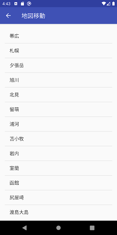 位置情報が[Off]の状態で、[Map]ボタンを選択することにより、各地域へ移動することができます。