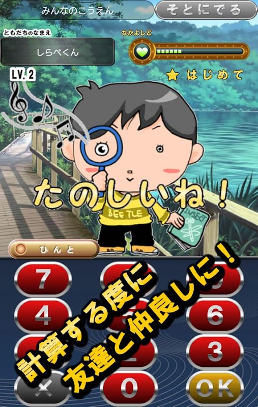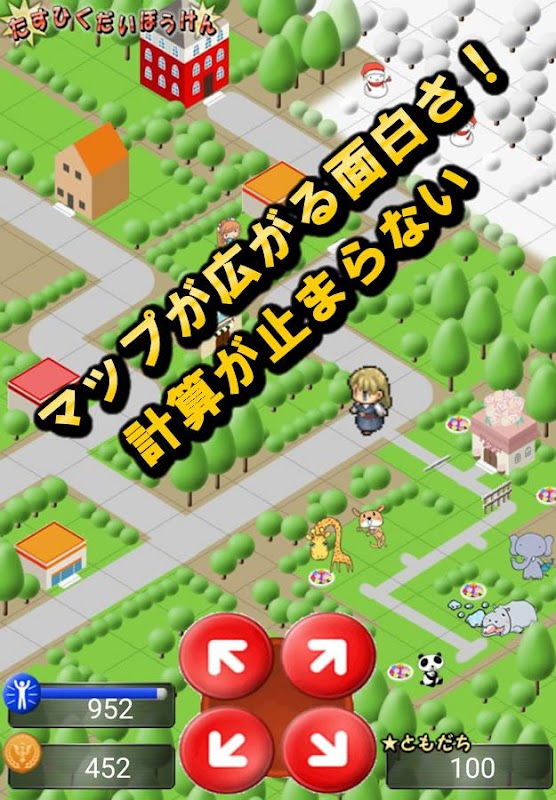 足し算、引き算の学習用アプリ。町や学校を舞台に探検し、計算をしながら友達を増やし、謎を解いていく。子供が夢中になれるアプリです。算数の予習・復習・反復練習に!