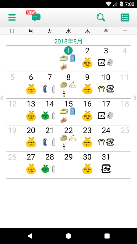 Vandaag en morgen kunt u onmiddellijk het garbage collection-schema bekijken met drie patronen per week, maandelijks op één scherm.