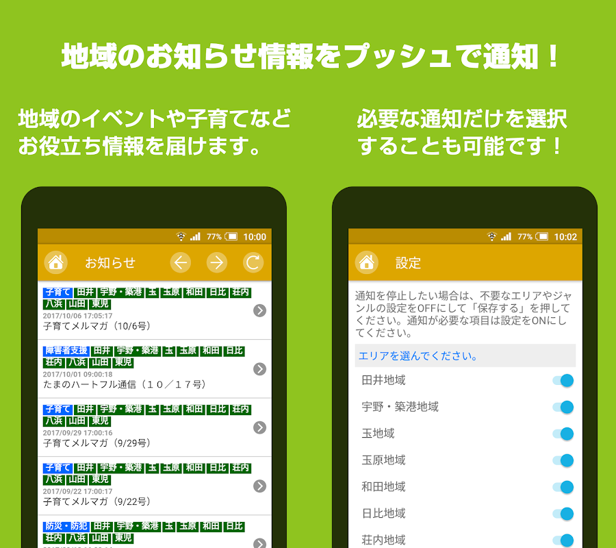 暮らしに便利な情報をプッシュ通知でお知らせします。