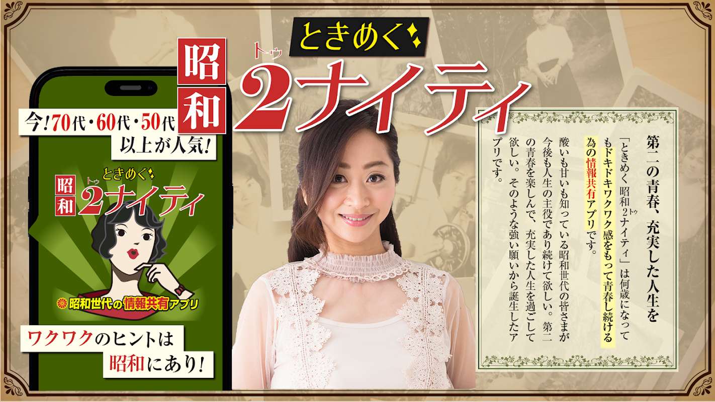 [Tokimeku Showa 2 Nighty] is een app voor het delen van informatie om je jong en opgewonden te houden, hoe oud je ook bent.