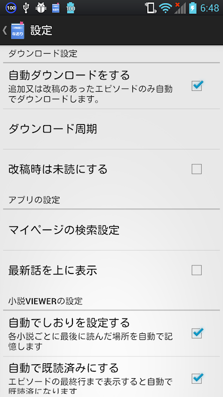 ・追加・改稿エピソードの自動ダウンロード(ネットワークにつながっている場合のみ)