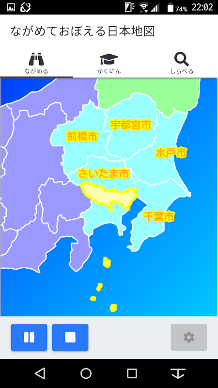 ・本アプリで日本地図を繰り返しながめることにより、記憶を定着させ、気づいたらいつの間にかおぼえていたという状態になることを目指しています。