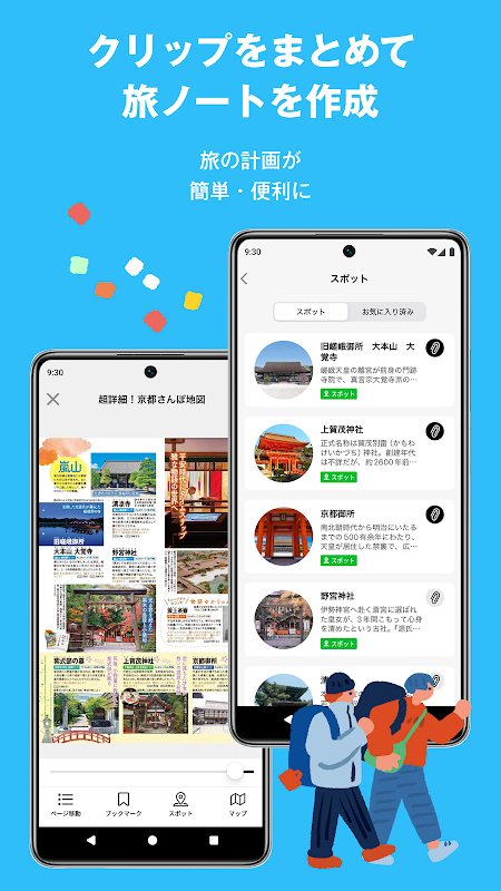 • ガイドブックや記事で見つけた「行ってみたい場所」「気になるお店」をワンタップでクリップ。