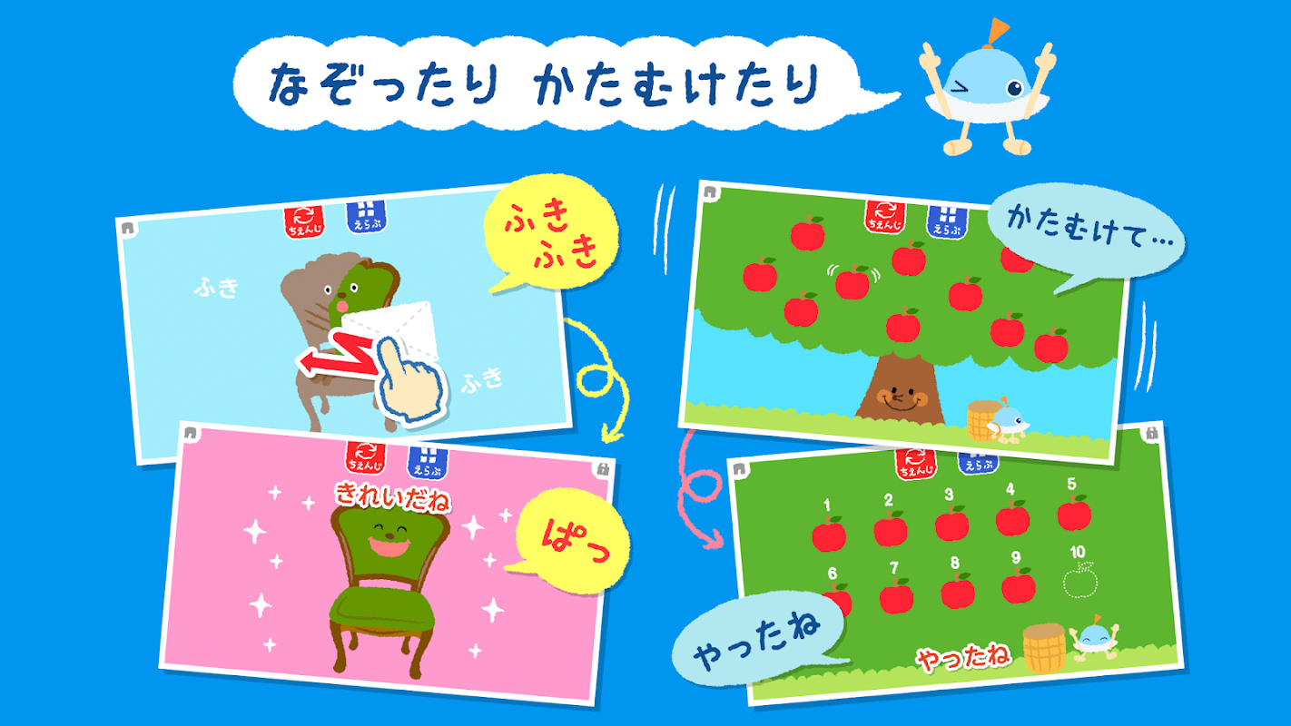 Een app voor kinderen vanaf 2 jaar! Laten we spelen door te traceren, te proberen er vanaf te komen en verschillende andere bewerkingen uit te voeren! Er zijn ook games die u gratis kunt spelen zonder gedoe met banneradvertenties.