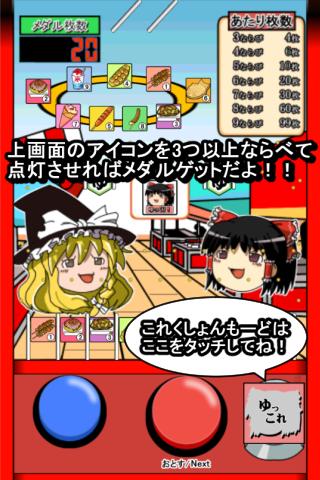 ゆっくり達に生暖かく見守られながらボールを落とし、画面上部のランプを3つ以上繋げてメダルをゲット!貯めたメダルでカードをコレクションしちゃおう!
