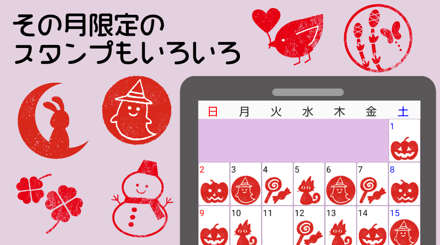 Deze app ondersteunt je bij het aanleren van kleine losse eetgewoonten. Zet een stempel op de kalender met de afbeelding van een aanwezigheidskaart voor radiogymnastiek en eet smakelijk ♪