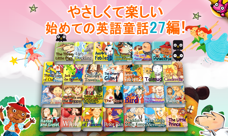 お子さんがよく知っている内容の童話をみながら、英語と親しくなります。