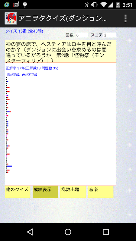 クイズの成績をファイルに保存でき、各設問の正解状況を表示することもできます!