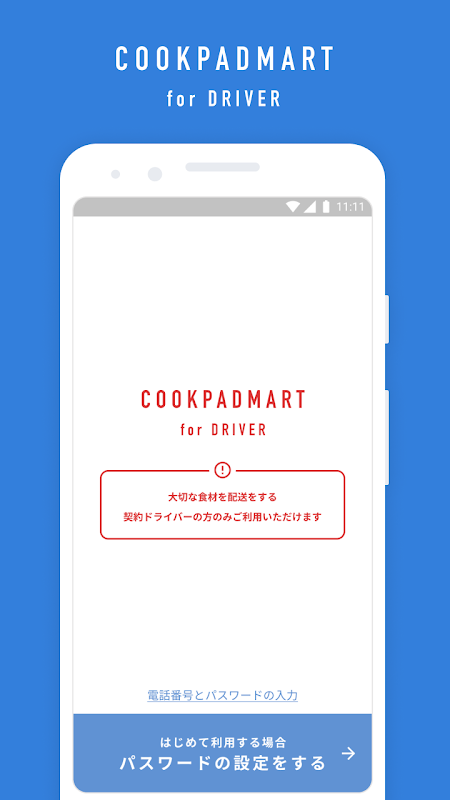 【注意】こちらのアプリは、クックパッドマートの注文品をお届けする配送員様専用アプリとなっております。それ以外の方はご利用いただけません。