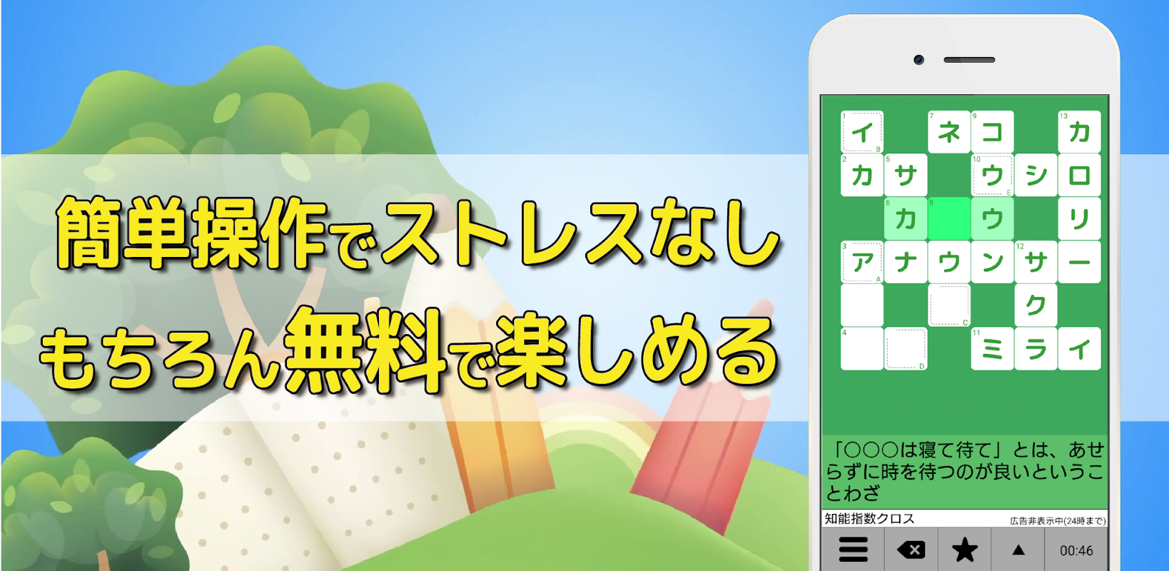Het is een kruiswoordpuzzel die gemakkelijk te spelen is en vasthoudt aan de kwaliteit van het probleem bij het nastreven van bruikbaarheid. Het is een populair en geselecteerd spel waarin advertenties verdwijnen na 30 minuten spelen. Het helpt hersentraining en dementie te voorkomen.