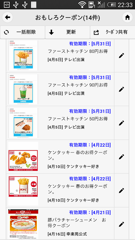 ・1タップでクーポン券をダウンロード、更新できます。さらにオフラインでも参照できます