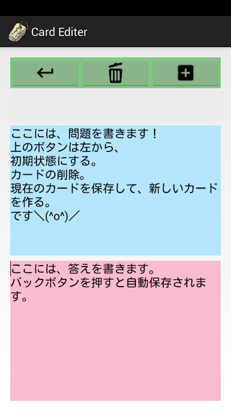 自身で暗記帳を作成し、カードをどんどん追加していき、自分だけの暗記帳を是非本アプリでおつくりください!