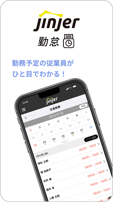 Een jinjer aanwezigheidsmanager-app waarmee je de aanwezigheid op elk moment eenvoudig kunt beheren. Alles kan worden beheerd met slechts een smartphone met behulp van de personeelsapp en manager-app!