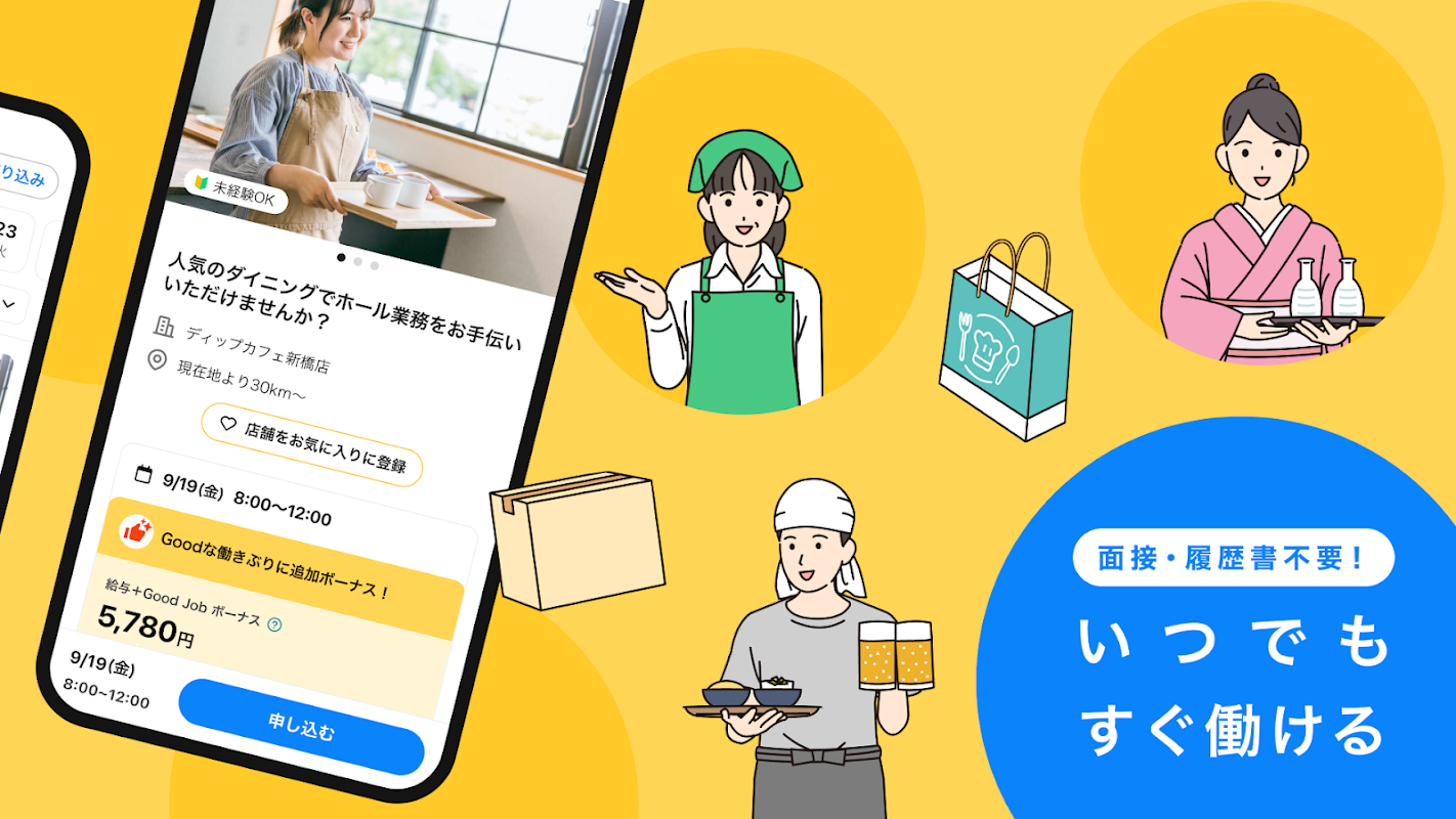 ・Kies uit een breed scala aan functies, waaronder magazijnwerk, klantenservice in restaurants, supermarktbevoorrading, kassamedewerker in een buurtwinkel, kledingbezorging en het verspreiden van folders. Zo is het voor mensen zonder ervaring of nieuwkomers in een eenmalige of parttime baan gemakkelijk om een nieuwe functie uit te proberen.