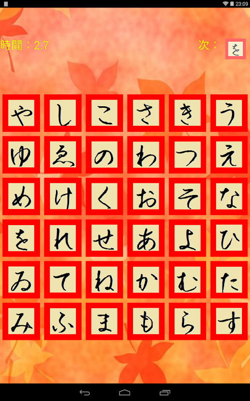 画面にランダムに表示されたいろは歌を順番にタッチしていき、クリアタイムを競いながら「いろは歌」も覚えよう!