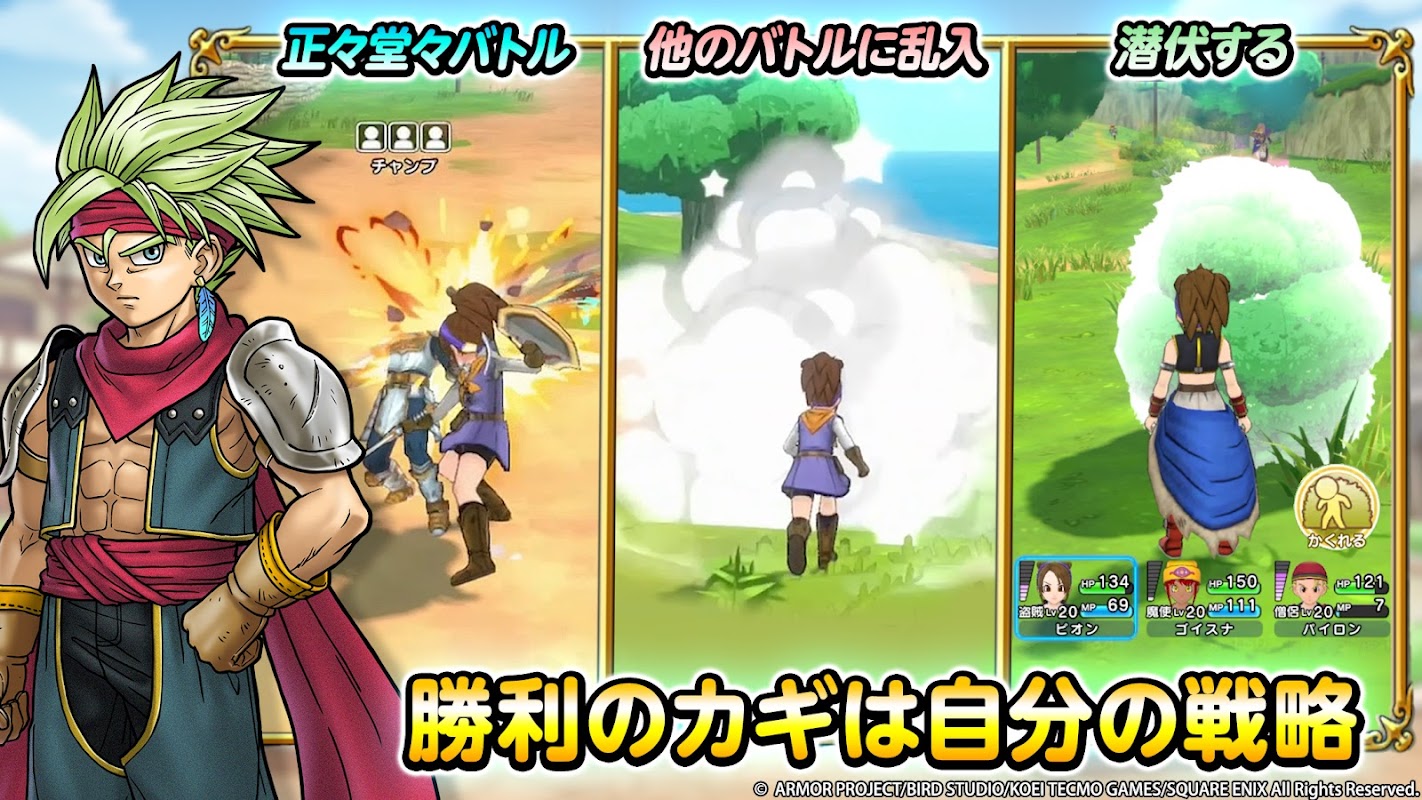 Functies zoals "commandogevecht", "taakselectie", "karakterontwikkeling" uniek voor Dragon Quest, en bekende monsters verschijnen ook!