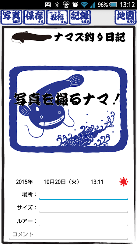 いつどこで何のルアーでナマズを釣ったのか記録できます。