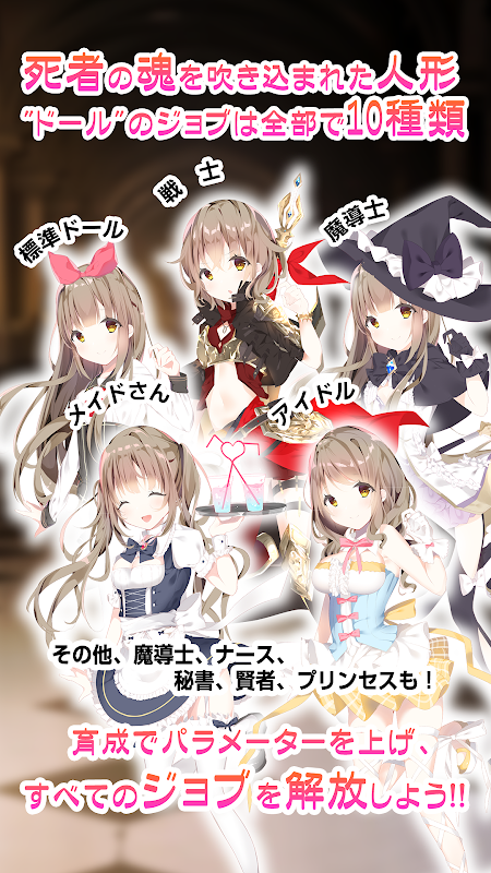 プレイヤーはレイミとともに、パズルゲームと鍛錬メニューから戦闘・知力・魔力・気品・魅力の5つのパラメーターをアップさせ、全部で10種類あるドールのジョブ解放を目指します。