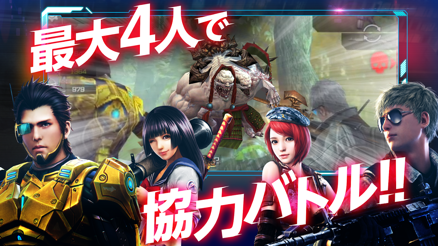 シューティングゲームファンだけでなく、TPSやFPSゲームファンでも大満足!最大4人でオンライン協力マルチプレイ!友達と楽しめる「共闘モード」!