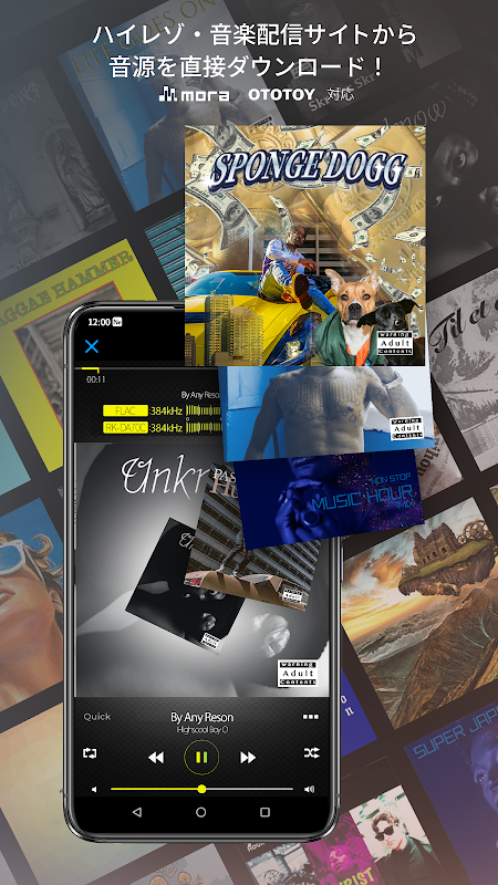 Het is mogelijk om muziek die is gekocht van muziekdistributiesites met hoge resolutie "mora" en "OTOTOY" rechtstreeks te downloaden en af te spelen naar NePLAYER voor AUSU. U kunt van elke service vooraf nummers kopen en deze rechtstreeks naar NePLAYER voor ASUS downloaden om ze te bekijken. U kunt eenvoudig nummers toevoegen zonder te synchroniseren met uw pc.