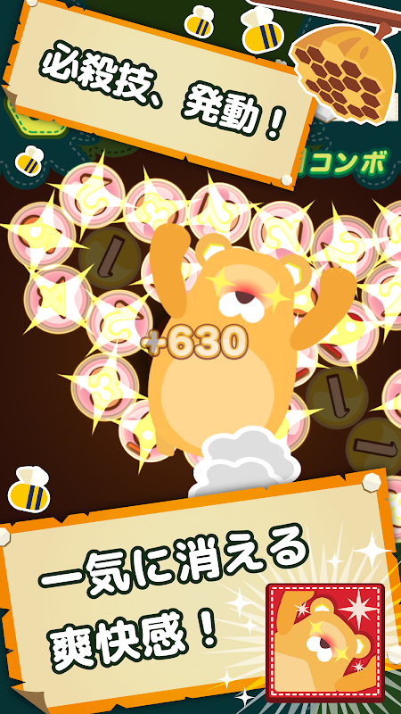 他にも、チェイン(より多くの数字ブロックを繋げる)によって"レアハニー"が