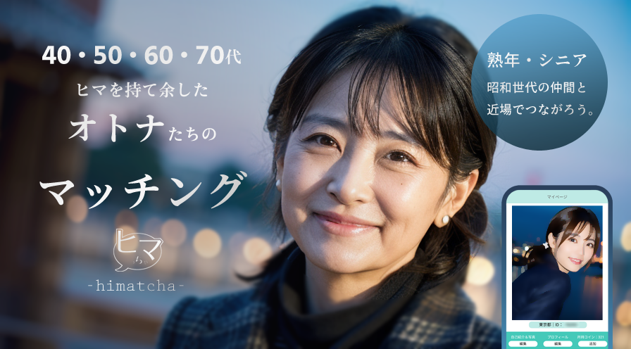 Over 熟年ご近所マッチング‐近場の昭和世代と暇つぶし-ヒマっちゃ
