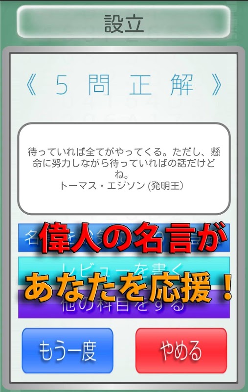 歴史上の人物、スポーツ選手、起業家、さらには漫画のキャラクターの名言が収録されていて、あなたを応援します。