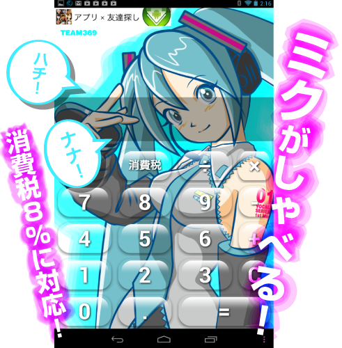 『ボーカロイド 初音ミク 電卓』の Android タブレット版です ( nexus7に最適!)。