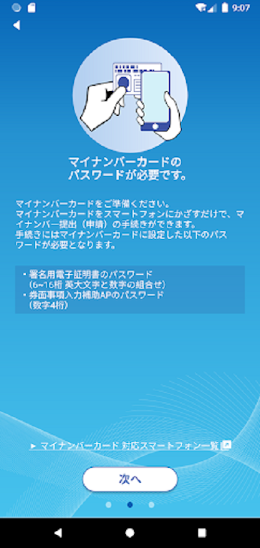 Het wordt een speciale applicatie voor de Mitsui Sumitomo Insurance Group. U kunt uw Mijn Nummer aangeven met de functie Mijn Nummerkaart. (Mijn nummerkaart is vereist.)