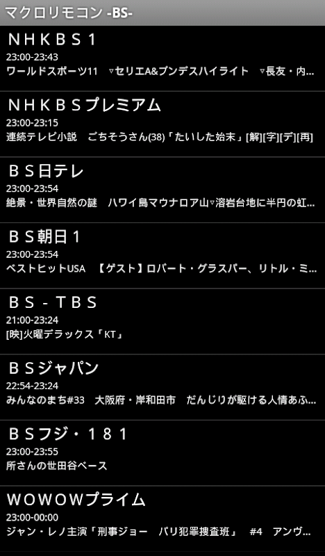 地デジとBSは放送中の番組名を表示する事も出来ます(「Gガイド.テレビ王国」のRSSに依存)