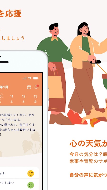 ■Een app voor de geestelijke gezondheidszorg na de bevalling. Begin met het kennen van je eigen emoties.