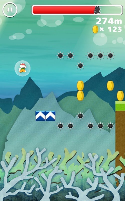 ① De kat blijft rennen, dus tik op het juiste moment om obstakels te vermijden.