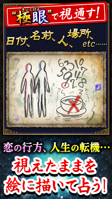 必要なのは名前だけ! 先祖代々受け継がれる“極眼”の力で あなたの結婚相手も恋の行方も暴き尽くす!