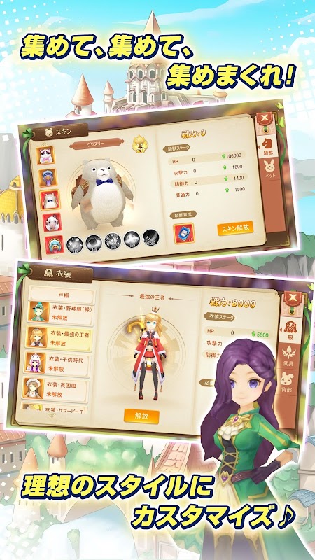 キャラクターの装いを自由にチェンジして、