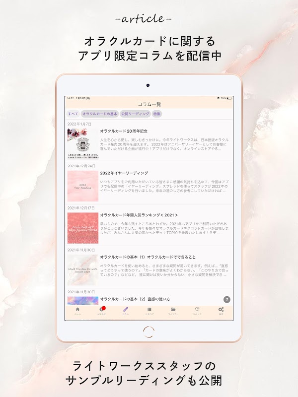 Elke maand wordt er een nieuwe Oracle-kaart geleverd voorafgaand aan de kaartversie. Met de app-versie kun je sneller dan waar dan ook genieten van Lightworks Oracle Cards.