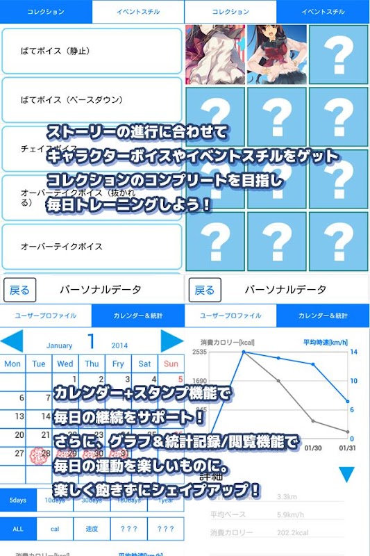 カレンダー/統計アドオン ・・・ カレンダー機能と、走行距離や消費カロリーなどを記録・グラフ化できる機能を追加できます。
