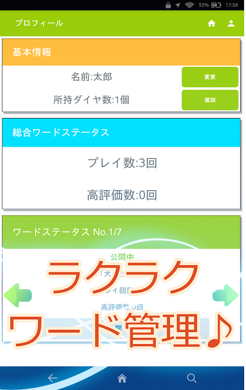 自分が作ったワードのプレイされた回数や高評価数も見ることが可能。